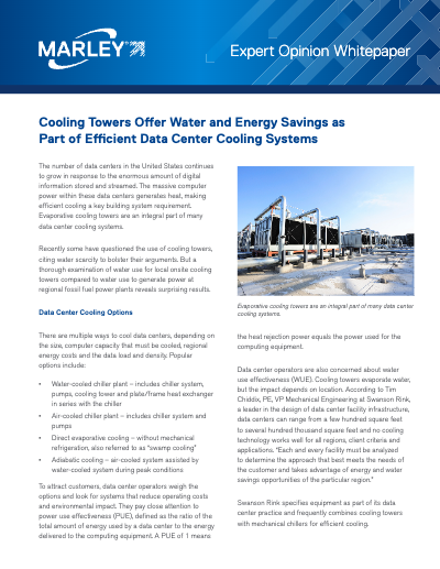 Cooling Towers Offer Water and Energy Savings as Part of Efficient Data Center Cooling Systems