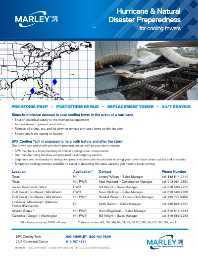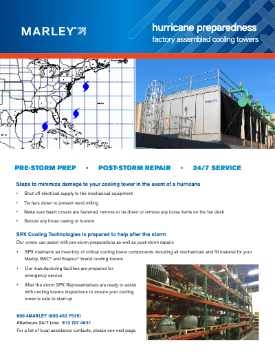 SPX Cooling is prepared to help both before and after the storm. Our crews can assist with pre-storm preparations as well as post-storm repairs.Available Document Languages