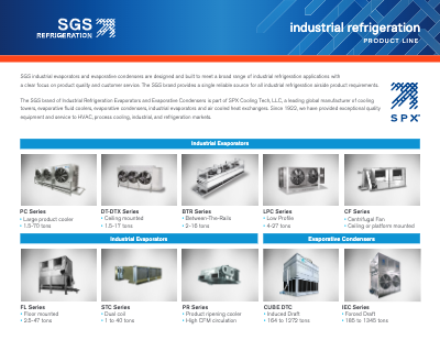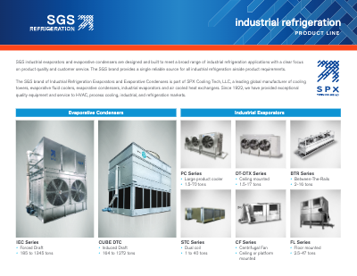 SGS industrial evaporators and evaporative condensers are designed and built to meet a broad range of industrial refrigeration applications with a clear focus on product quality and customer service.Available Document Languages